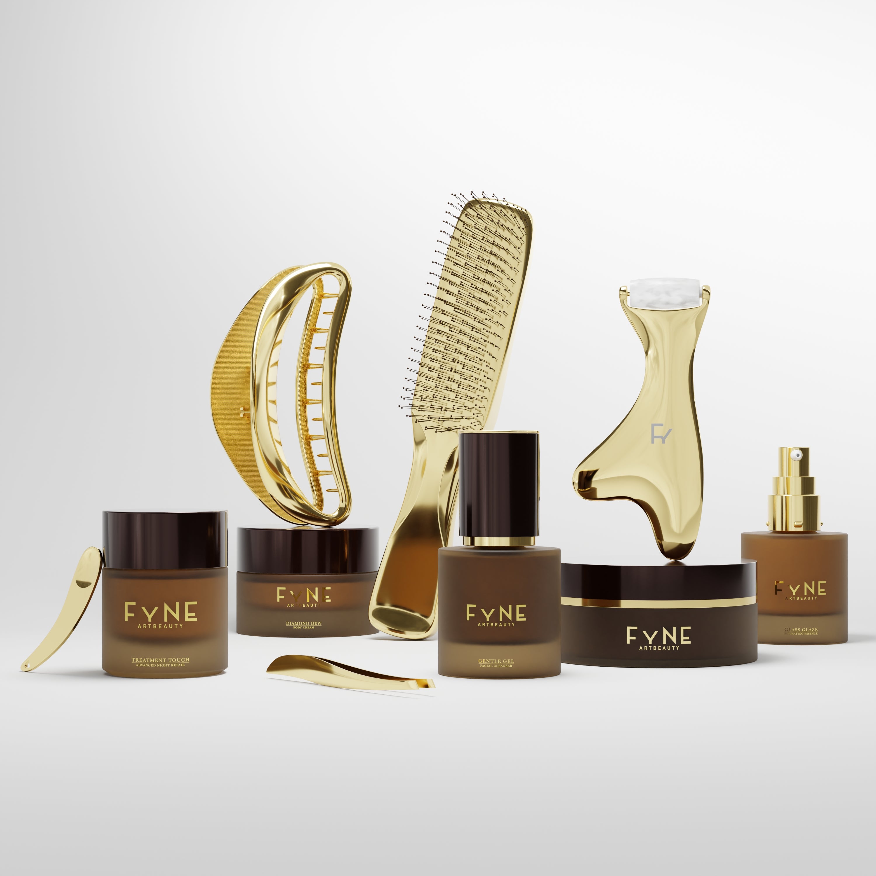 Indulge in the ultimate Self-Care ritual with our Fyne Self-Care Set - An effortlessly luxurious collection designed to elevate your everyday routine. Each formula wraps your skin in soothing hydration, luminous moisture and silky nourishment, while each tool brings a touch of gold-accented refinement to your daily rituals. Polished, calming and glow-enhancing, it’s everything you need to feel refreshed, restored and beautifully radiant, every single day.